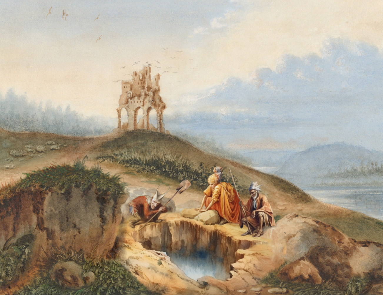 This procedure is inspired by Christopher Woodward’s In Ruins and Romantic era obsessions with ruins generally. The concept of the Sublime and the Passions they arouse is based on Edmund Burke’s A Philosophical Enquiry into the Origin of Our Ideas of the Sublime and Beautiful, the prose of which is liberally interpolated in this supplement. The illustrations are digital collages of romantic era artworks, mixed with digital painting and help from THE GREAT AI OVERLORDS. The skeuomorphic book is based on tourist albums designed for visiting ruins while on The Grand Tour.